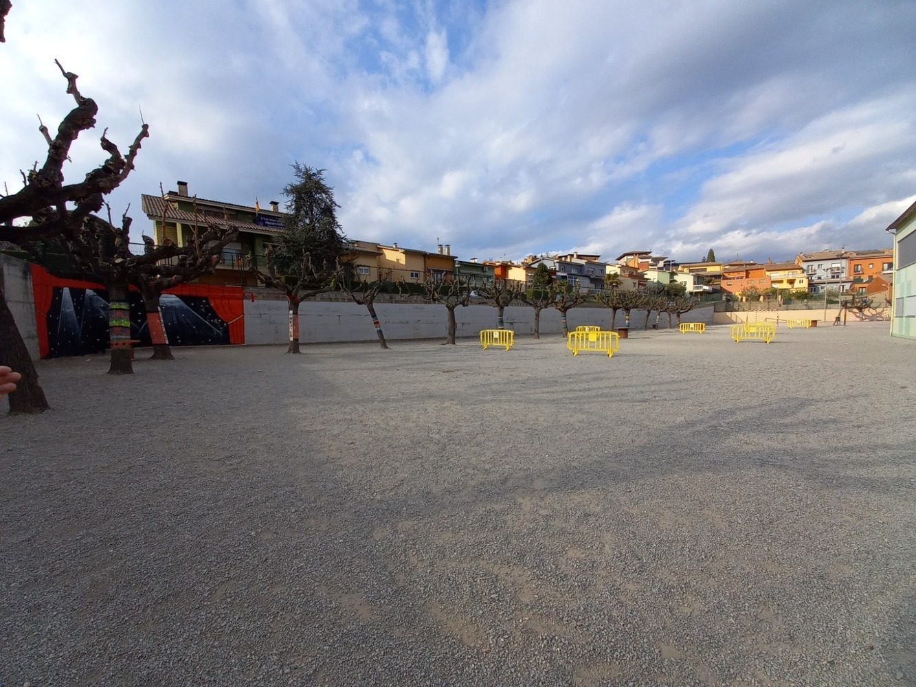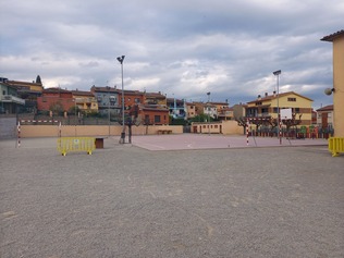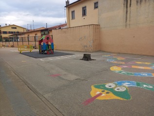 🔵 Actualment el pati és un espai cimentat, monòton, amb poques opcions de joc i allunyat d’una paisatge natural. Degut a la fusió de les dues escoles s’ha vist agreujada la necessitat de redissenyar l’espai.